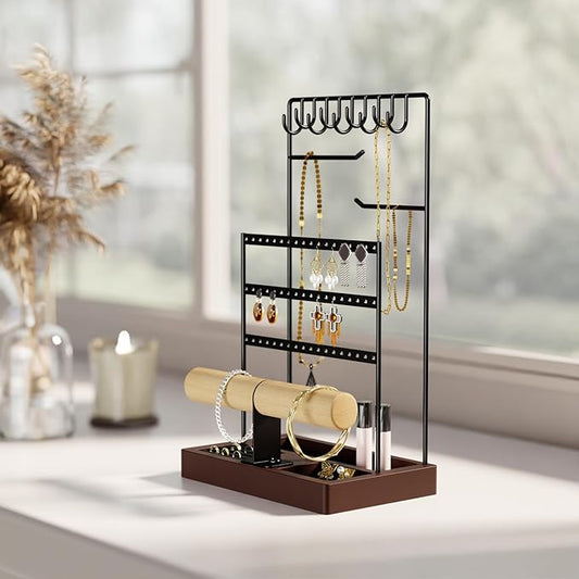niffgaff Jewelry Holder Earring Display Stand: Jewelry Organizer Stand Earring Display Bulk Earring Storage Bracelet Organizer Wooden Base