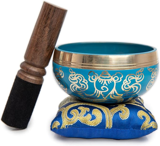 ibetan Singing Bowl Set Blue - Easy To Play for Beginners - Authentic Handcrafted Mindfulness Meditation