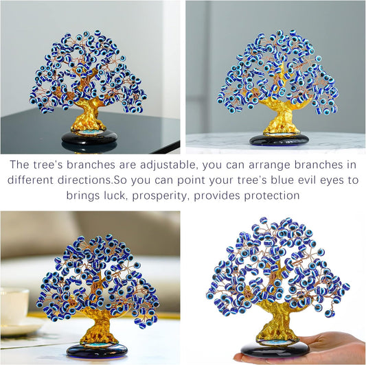 YU FENG 6.8inch Turkish Nazar Blue Evil Eye Tree, Evil Eye Coaster Tree for Protection Good Luck Prosperity Gift Showpiece for Home Table Office Decor