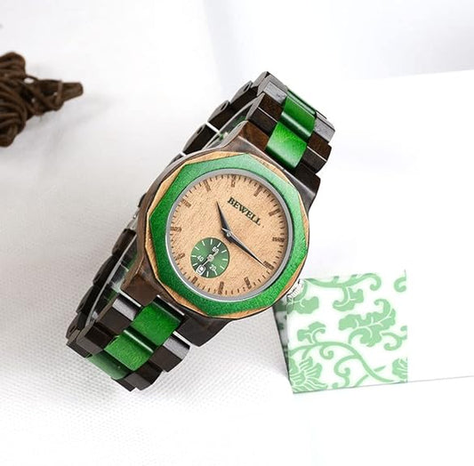 BEWELL Wood Watch Casual Analog Quartz Polygon Wristwatches for Men Unique Gift