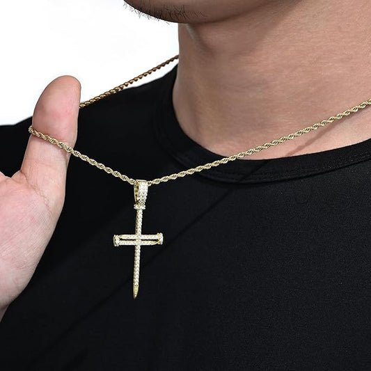 925 Sterling Silver Nail Cross Pendant Necklace Chain for Men Women Iced Out 14K Gold White Gold Plated Christian Jewelry with Gift Box