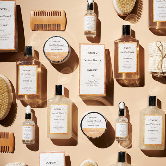 Christmas Gifts for Men, Spa Gift for Him, Dad, Mens, Husband - 11pc Vanilla Almond Unique Grooming Self Care Baskets, Bath and Body Beauty & Personal Beard Care Gifts for Men Who Have Everything