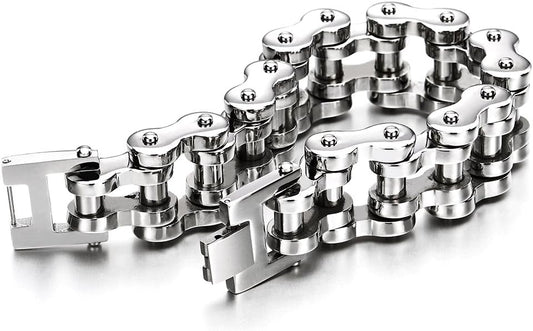 COOLSTEELANDBEYOND Heavy Sturdy Mens Motorcycle Chain Bike Chain Bracelet of Stainless Steel Silver Color Polished