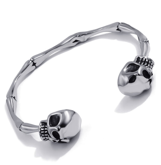 Men's Stainless Steel Skull Skeleton Bones Silver Cuff Bracelet Biker Jewelry
