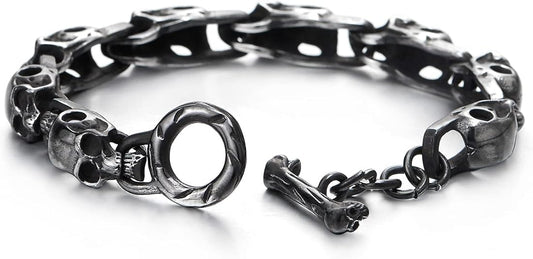 COOLSTEELANDBEYOND Stainless Steel Blackened Old Metal Finishing, Skulls Link Chain Bracelet for Man