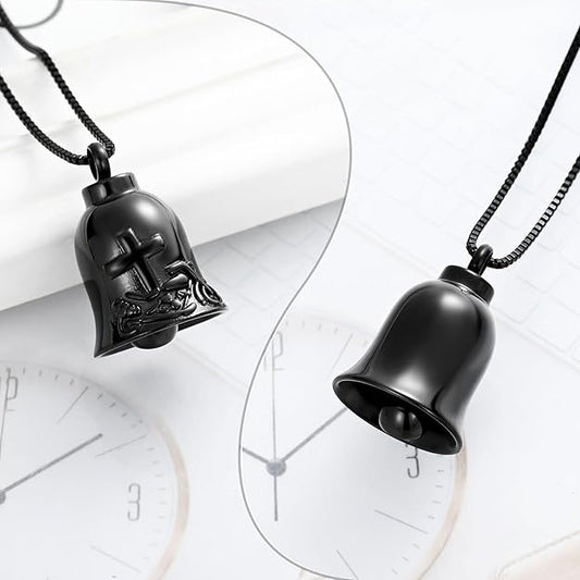 XSMZB Bell Urn Necklace for Ashes for Men Cross Motorcycle Cremation Jewelry Ashes Pendant for Human/Pet Keepsake Gift
