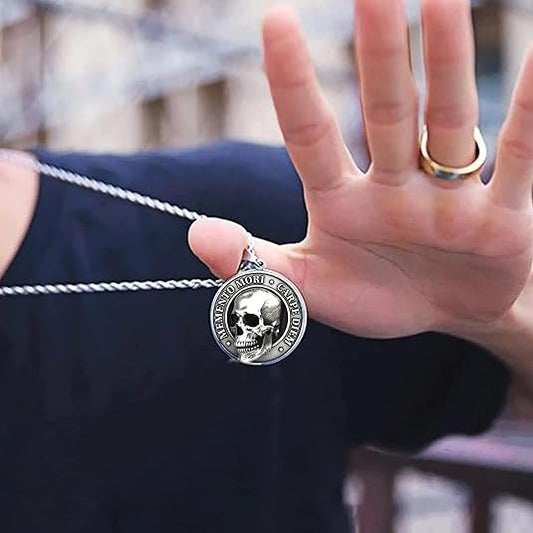 Memento Mori Necklace Carpe Diem Pendant 3D Skull Necklace for Men, Mori 400th Birthday Special Commemorative Necklace