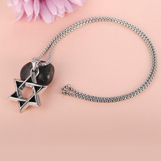 Rehoboth Star of David Six Pointed Megan Cross Pendant Necklaces for Men Stainless Steel Chain 24 Inch