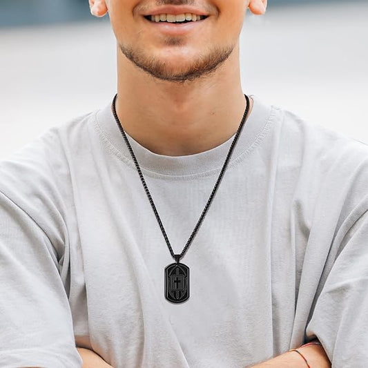 Bible Verse Cross Necklace for Men, Stainless Steel Cross Pendant Rope Chain Necklace Gifts for Boys