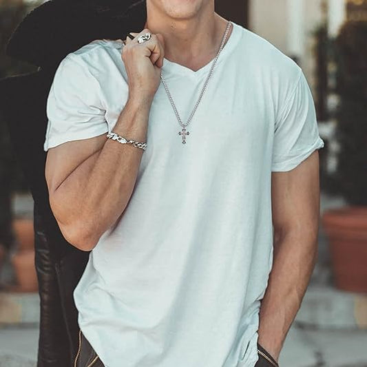 Cross Necklace for Men Silver Cross Chain for Men Gothic Cross Pendant Mens Cross Necklaces Stainless Steel Cross Necklace for Women Goth Necklace Christian Jewelry