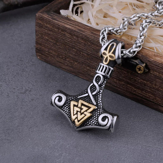 Men's Stainless Steel Chain Viking Pendant Silver Thor Mjolnir Hammer Gold Runes