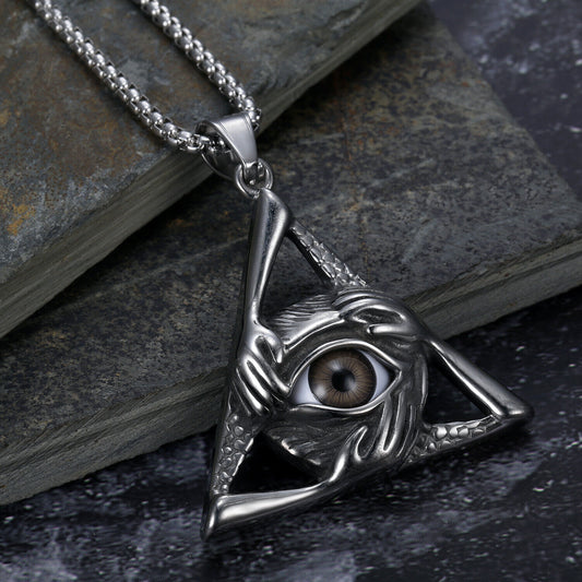 Men's Illuminati Egyptian All Seeing Grey Eye Necklace Pendant Stainless Steel