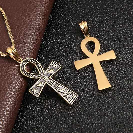 HZMAN Stainless Steel Large Ankh Cross Pendant Ancient Egyptian Hieroglyphic Symbol 22+2 Inch Chain