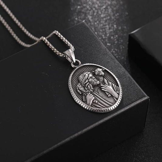 NIGHTCRUZ Jesus Shepherd Necklace, Oval Religious Medal Medallion Stainless Steel for Men