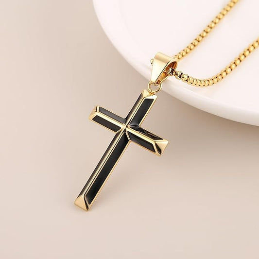HZMAN Cross Necklace for Men Stainless Steel High Polished Cross Necklace Pendant Christian Jewelry Gift with 24Inch Chain