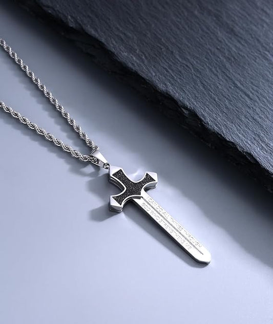 Inspirational Sword Necklace/Evil Eye Necklace,Amulet Pendant Necklace with Stainless Steel,Talisman Necklace,Spiritual and Strength Jewelry for Men Women with 24+2" inch Rope Chain