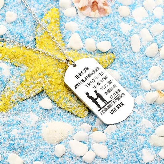 lauhonmin Mother Son Dog Tag Necklace for Men Boy To My Son You are Braver Stronger Smarter than you think Love Mom Stainless Steel