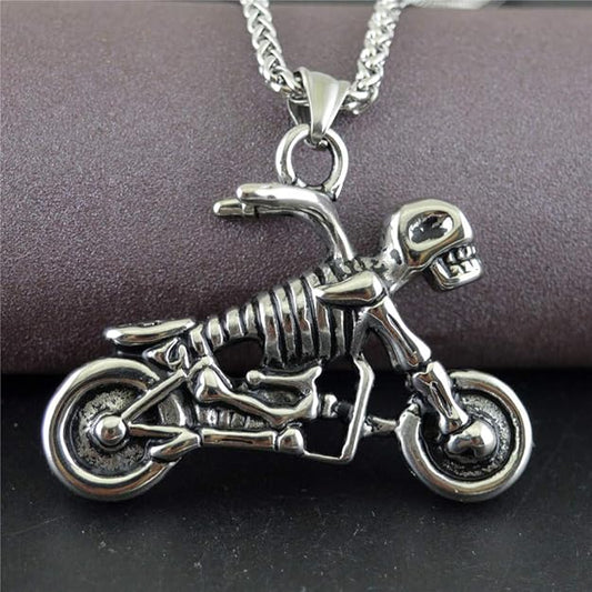 HZMAN Mens Women Gothic Retro Moon Crescent Skull Stainless Steel Pendant Necklace 22+2 Inch Chain