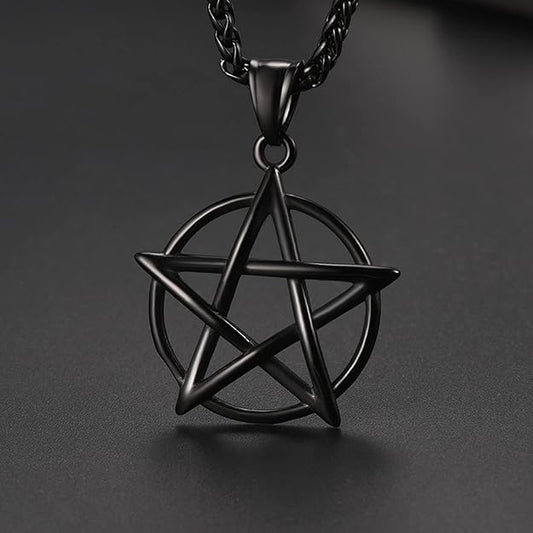 U7 Wiccan Necklace Pagan Pendant Men Women Stainless Steel/Black/18K Gold Plated Pentagram/Norse Viking/Raven Occult Necklaces