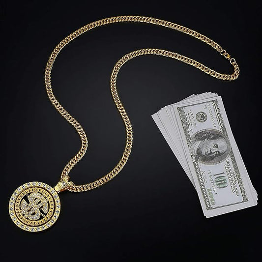 Costume Gold Chain for Men Spinner Dollar Sign Necklaces 36 Inches
