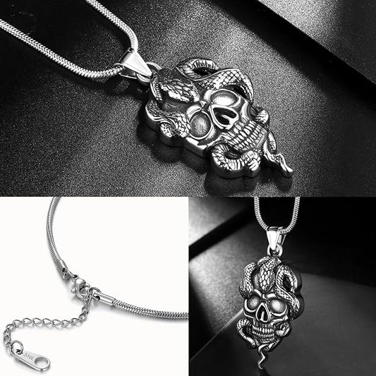Skull Halloween Punk Necklace - Men 316L Stainless Steel Skeleton Pendant Women Jointed Skeleton Halloween Costume Accessories Goth Punk
