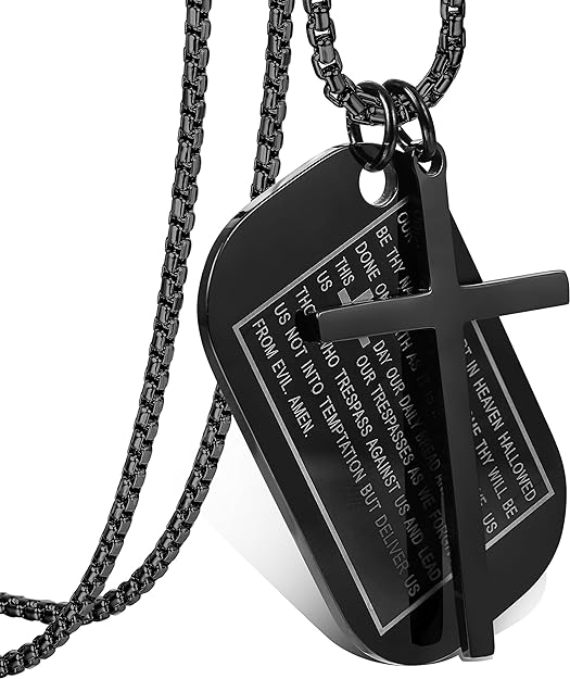 Jstyle Stainless Steel Dog Tags Cross Necklaces for Men Prayer Cross Necklace Military Rolo Chain 3mm 24 Inch