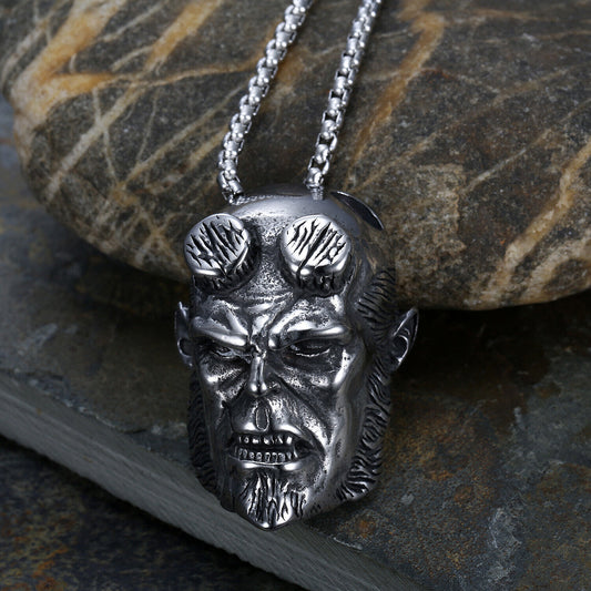 Stainless Steel Men's Punk Satanic Devil Lucifer Hellboy Pendant Necklace