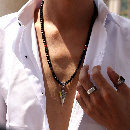 Men's Fashion Jewelry Tiger Eye Stone Beaded Arrow Pendant Necklace