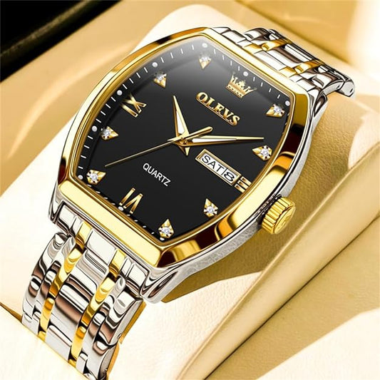 OLEVS Mens Watches Luxury Business Diamond Analog Quartz Watches for Men with Date Two Tone Stainless Steel Waterproof Luminous Dress Wrist Watches