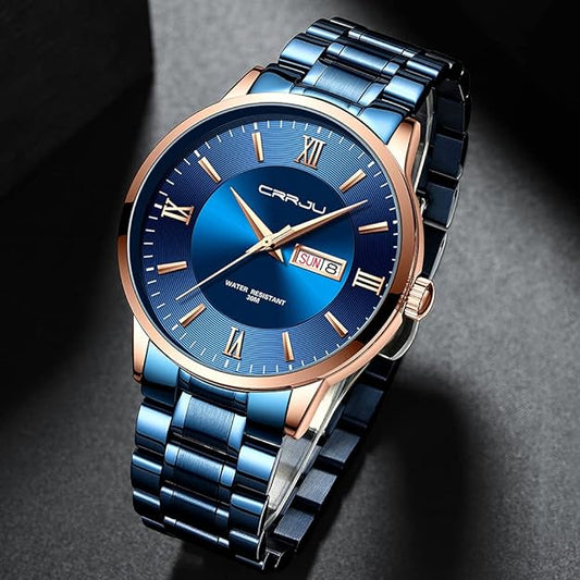 CRRJU Men's Fashion Luxury Stainless Steel Watches for Men Business Auto Date Chronograph Analog Quartz Wristwatches
