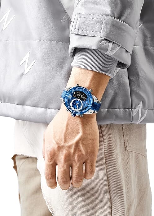 NAVIFORCE Men's Multifunction Waterproof Sport Analog Digital Quartz Watch with Chronograph Dual Time Alarm SIG Snooze Function