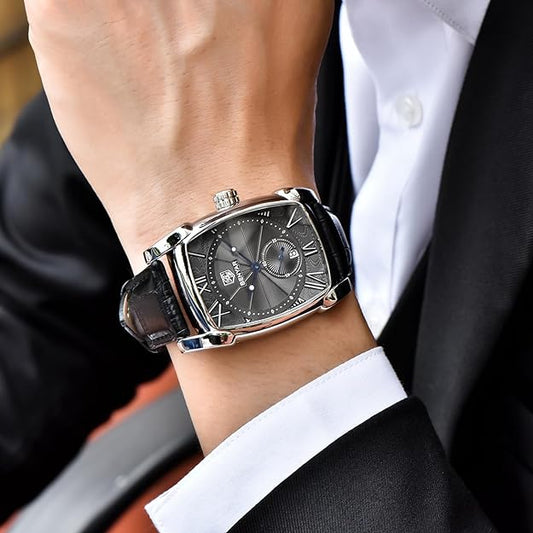 OLEVS Square Watches for Men Diamond Analog Quartz Stainless Steel Big Face Business Luxury Dress Mens Wrist Watch with Date Waterproof Luminous