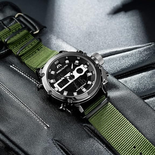 MEGALITH Mens Watches Waterproof Digital Military Sport Tactical Multifunction Heavy Duty Led Digital Watch for Men, Alarm Stopwatch, Nylon/Leather Strap