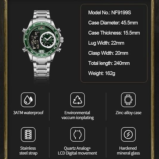 NAVIFORCE Men's Multifunction Waterproof Sport Analog Digital Quartz Watch with Chronograph Dual Time Alarm SIG Snooze Function