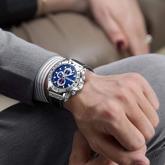 FANMIS Mens Luxury Watches Business Chronograph Dress Waterproof Leather Strap Analog Quartz Wrist Watch