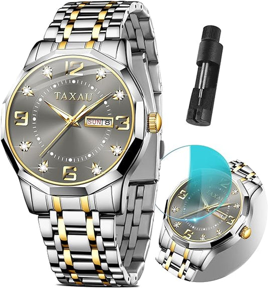 Tiong Mens Watches Chronograph Stainless Steel Waterproof Date Analog Quartz Watch Business Casual Fashion Wrist Watches for Men