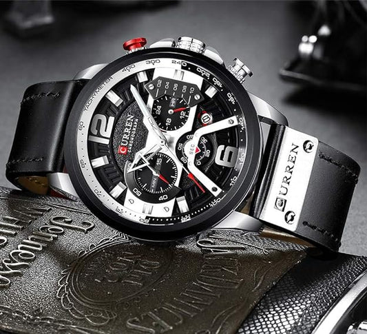 CURREN Men Watches Luxury Gold Male Fashion Leather Strap Outdoor Casual Sport Wristwatch with Big Dial