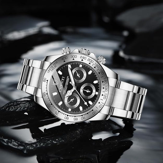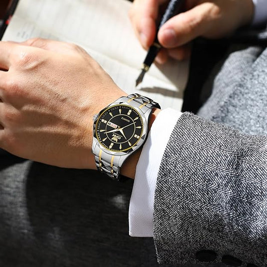 Watches for Men,Dress Analog Quartz Mens Watch, Stainless Steel Waterproof Luminous Wristwatch ,Big Face Calendar Elegant Gift for Men