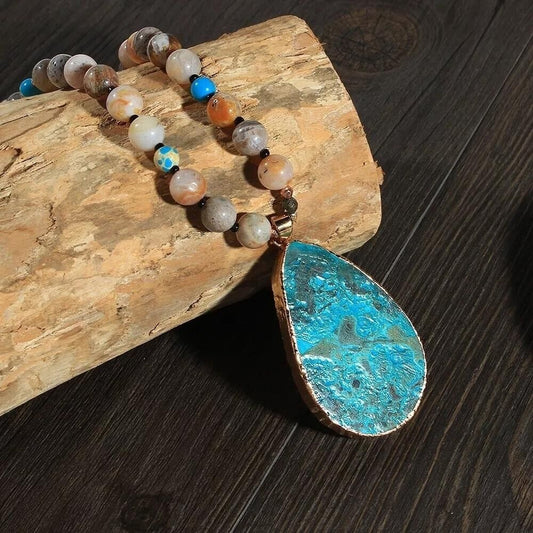 Natural Amazonite Jasper Stone Beaded Necklace Raw Turquoise Pendant