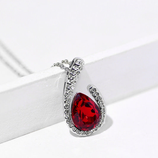 Elegant Ruby Garnet Women Jewelry 925 Sterling Silver Necklace (Pendant + Chain)