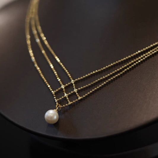 18K Gold Plated White Pearl Pendant Necklace for Women ,Elegant Pearl Necklace