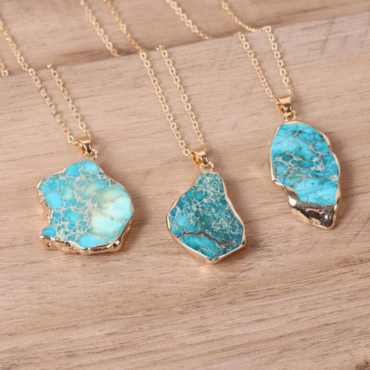 Natural Raw Turquoise Stone Blue Gemstone Pendant Necklace Gold Chain