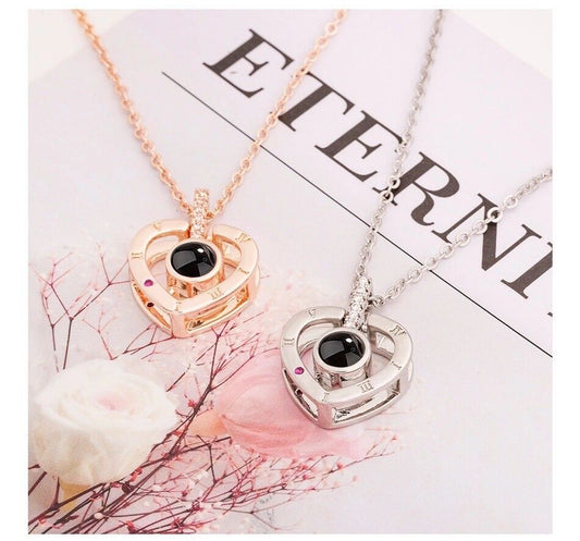 I LOVE YOU in 100 Languages Light Projection Heart Necklace