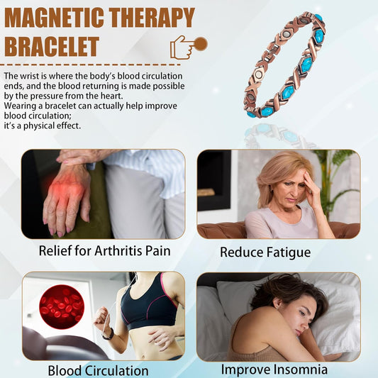 Copper Magnetic Bracelet for Women, Turquoise Detox Jewelry with 3500 Gauss Magnet (Type C)