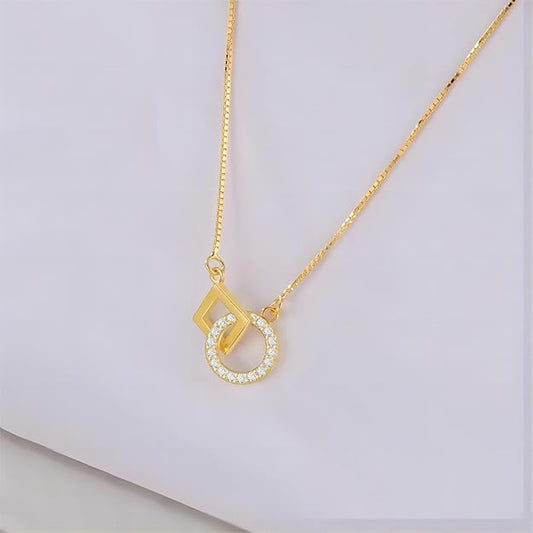 925 Silver Square and Circle Intersect Necklace Pendant Inlay Tiny Zircon Necklace for Womem Wife Girlfriend