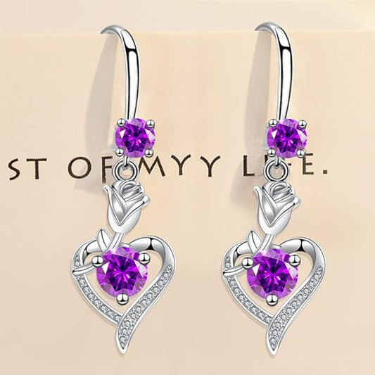 925 Sterling Silver Dangle Earrings for Women Nickel Free Hypoallergenic Earrings for Women Trendy Fashion Heart Dangle Drop Sparkly Crystal Earrings for Women