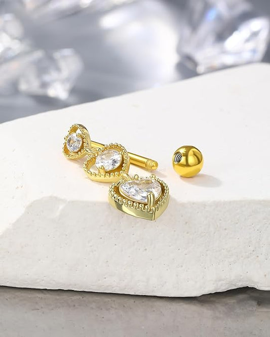 Agrewd Triple Heart Dangle Belly Button Rings 14G Reverse Belly Navel Rings
