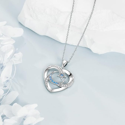 AXELUNA Moon Star Necklace Heart Necklace Sterling Silver S925 Cubic Zirconial Jewelry for Women Ladies