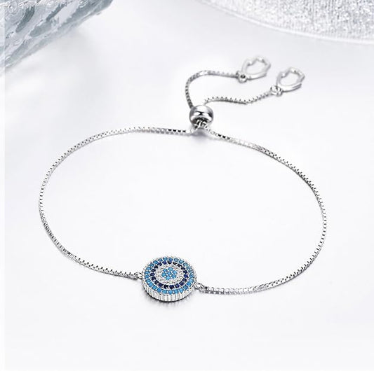 BISAER 925 Sterling Silver Blue Evil Eye Bracelet with Cubic Zirconia Hamsa Adjustable Chain Bracelets for Women