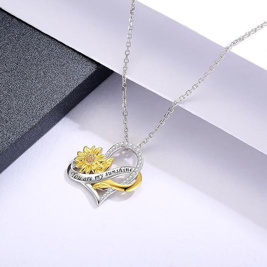 APOTIE You Are My Sunshine Necklace Sterling Silver Infinity Cross Heart Sunflower Pendant Flower Inspirational Jewelry Gift for Mom Daughter Wife Women